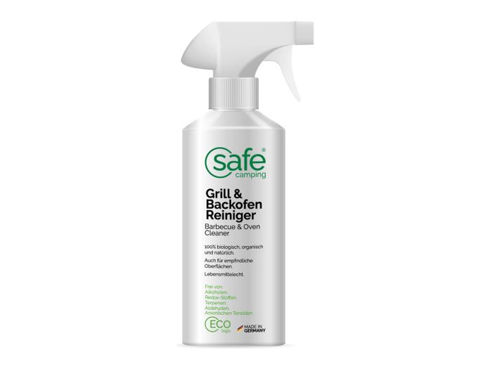 SAFE CAMPING Grill- & Backofen-Reiniger ist ein Intensivreiniger speziell für hartnäckige Verkrustungen, Fettreste, Marinadenrückstände und viele weitere Verschmutzungen an Grills und Backöfen, Rosten und sonstigen verwendeten Devices. Trotz der stark fettlöslichen Eigenschaften ist der Reiniger oberflächen- und umweltverträglich – insbesondere nutzt er keine Alkohole und Tenside. Für Mensch, Kind und Tier ist er ungefährlich. Der SAFE CAMPING Grill- & Backofen-Reiniger beugt Beschädigungen auch bei empfindlichen Oberflächen über Bildung eines Schutzfilms vor. Geeignet für gusseiserne, verchromte, emaillierte und Edelstahl-Roste. Barbecue unter freiem Himmel – warum nicht mit gepflegten Utensilien.