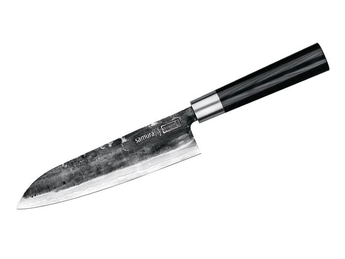 Das Samura Super 5 Santoku ist ein schönes Küchenmesser für den professionellen Einsatz. Wunderschön gestaltete Klinge aus 5 Lagen VG-10-Stahl, ein Teil grob bearbeitet und ein Teil bearbeitet. Der Griff besteht aus Micarta mit einer Edelstahlbacke. Die Balance des Messers befindet sich auf der Rückseite, sodass das Messer beim Schneiden gut in der Hand liegt. Dieses Santokumesser eignet sich für fast alle Schneidaufgaben, eignet sich jedoch perfekt zum Schneiden, Würfeln und Feinschneiden. Am längsten halten sie, wenn Sie sie nicht in der Spülmaschine reinigen.