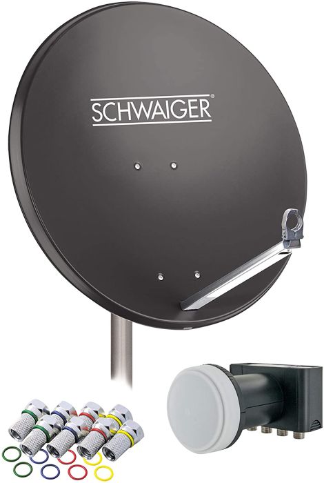 Mit dieser SCHWAIGER® Offset Antenne können alle freien und verschlüsselten Fernseh- und Radioprogramme über Satellit empfangen werden. Dank der Größe der Antenne ist eine gute Empfangsreserve bei schlechter Witterung wie Regen oder Schneefall gegeben. Das Quad LNB ist für Multifeedanlagen geeignet und kann für den Aufbau einer digitaltauglichen Satellitenanlage mit bis zu 4 Teilnehmern verwendet werden. Die F-Anschlüsse sind durch eine herausziehbare Wetterschutzabdeckung geschützt.