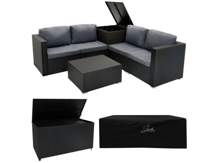 Hergestellt aus hochwertigem, maschinengewebtem Polyrattan über einem robusten Stahlrahmen, sind sowohl das Möbelset als auch die Aufbewahrungsbox so konstruiert, dass sie den Außenelementen standhalten und gleichzeitig ein modernes, elegantes Aussehen bewahren. Die leichte, aber stabile Konstruktion ermöglicht eine mühelose Umstellung, sodass Sie Ihren Raum nach Bedarf anpassen können.