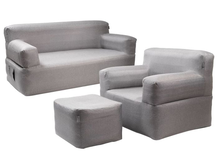 In diesem Produktpaket sind direkt alle drei Einzelartikel der Serie jeweils einmal enthalten: das Luftsofa, Doppel-Luftsofa und der Lufthocker. Ein unschlagbares Team für bequemes Sitzen und Entspannen zu Hause und auf dem Campingplatz.