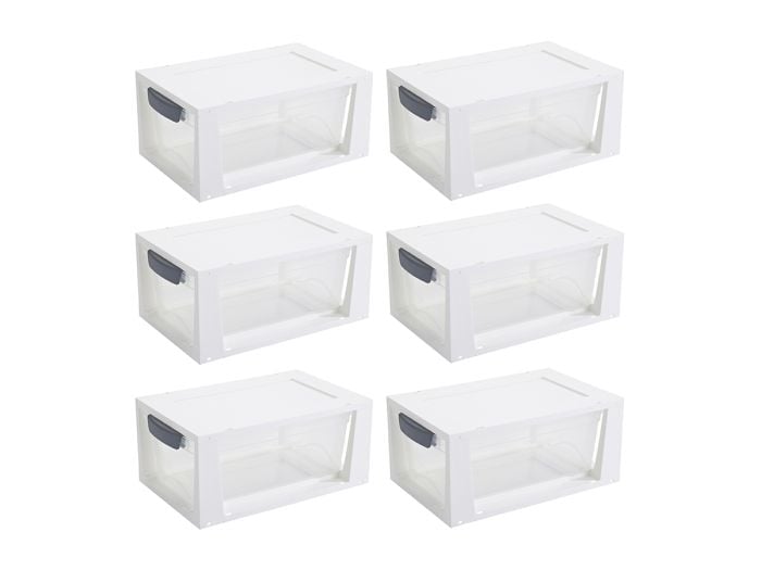 Die Omega-Schubladeneinheiten bieten den gleichen Komfort wie die 6- und 11-Liter-Omega-Clear-Boxen, aber mit einigen Extras! Diese Schubladenelemente lassen sich problemlos stapeln und miteinander verbinden. So können Sie im Handumdrehen eine praktische Schubladeneinheit für Ihre Wünsche zusammenstellen. Diese 6-Liter-Einheit eignet sich für die Aufbewahrung von Kleidungsstücken und Accessoires wie Socken, Unterwäsche, Schals und Gürtel, aber auch für den Einsatz im Büro oder im Arbeitszimmer. Groß im Fassungsvermögen, aber klein genug, um auf dem Schreibtisch Platz zu finden!