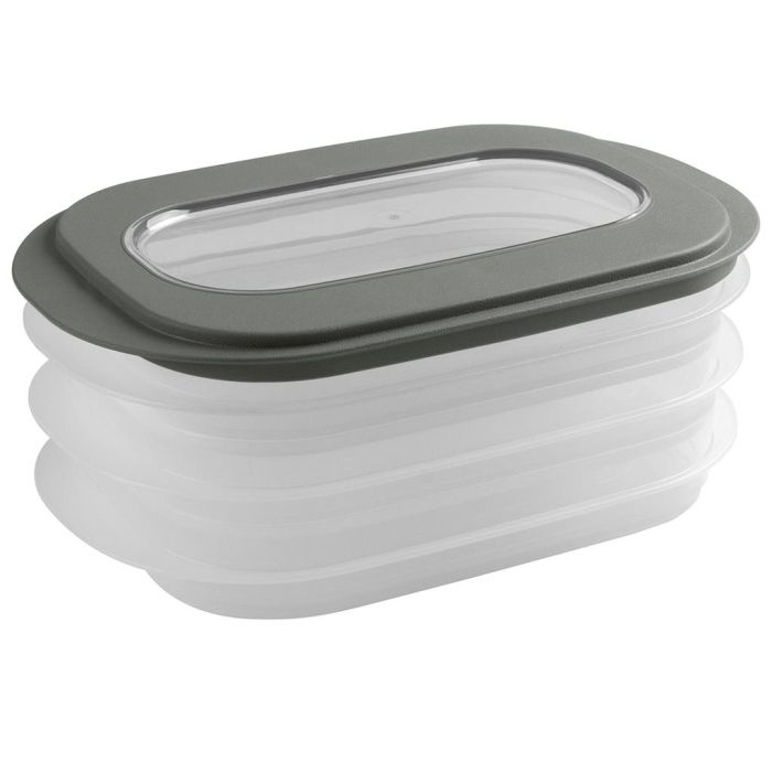 Bewahren Sie Fleischprodukte in dieser Frischebox aus unserer Sigma home Kollektion auf. Der flexible Deckel sorgt für einen luftdichten Verschluss, damit die Lebensmittel frisch bleiben. Die Box besteht aus drei stapelbaren Tabletts, so dass Sie verschiedene Sorten von Fleischprodukten getrennt voneinander aufbewahren können. Diese Frischebox für Fleisch hält Temperaturen von + 120 °C bis - 40 °C aus und ist daher kühlschrank-, gefrierschrank- und mikrowellengeeignet (bei Verwendung in der Mikrowellemuss der Deckel vorher entfernt werden).