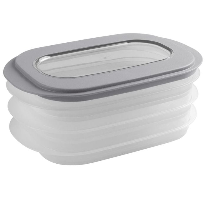 Bewahren Sie Fleischprodukte in dieser Frischebox aus unserer Sigma home Kollektion auf. Der flexible Deckel sorgt für einen luftdichten Verschluss, damit die Lebensmittel frisch bleiben. Die Box besteht aus drei stapelbaren Tabletts, so dass Sie verschiedene Sorten von Fleischprodukten getrennt voneinander aufbewahren können. Diese Frischebox für Fleisch hält Temperaturen von + 120 °C bis - 40 °C aus und ist daher kühlschrank-, gefrierschrank- und mikrowellengeeignet (bei Verwendung in der Mikrowelle muss der Deckel vorher entfernt werden).