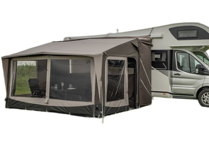 Dank der separat erhältlichen Anschlusslaschen eignet sich dieses Wohnmobilzelt für Bus-Wohnmobile und normale Wohnmobile.