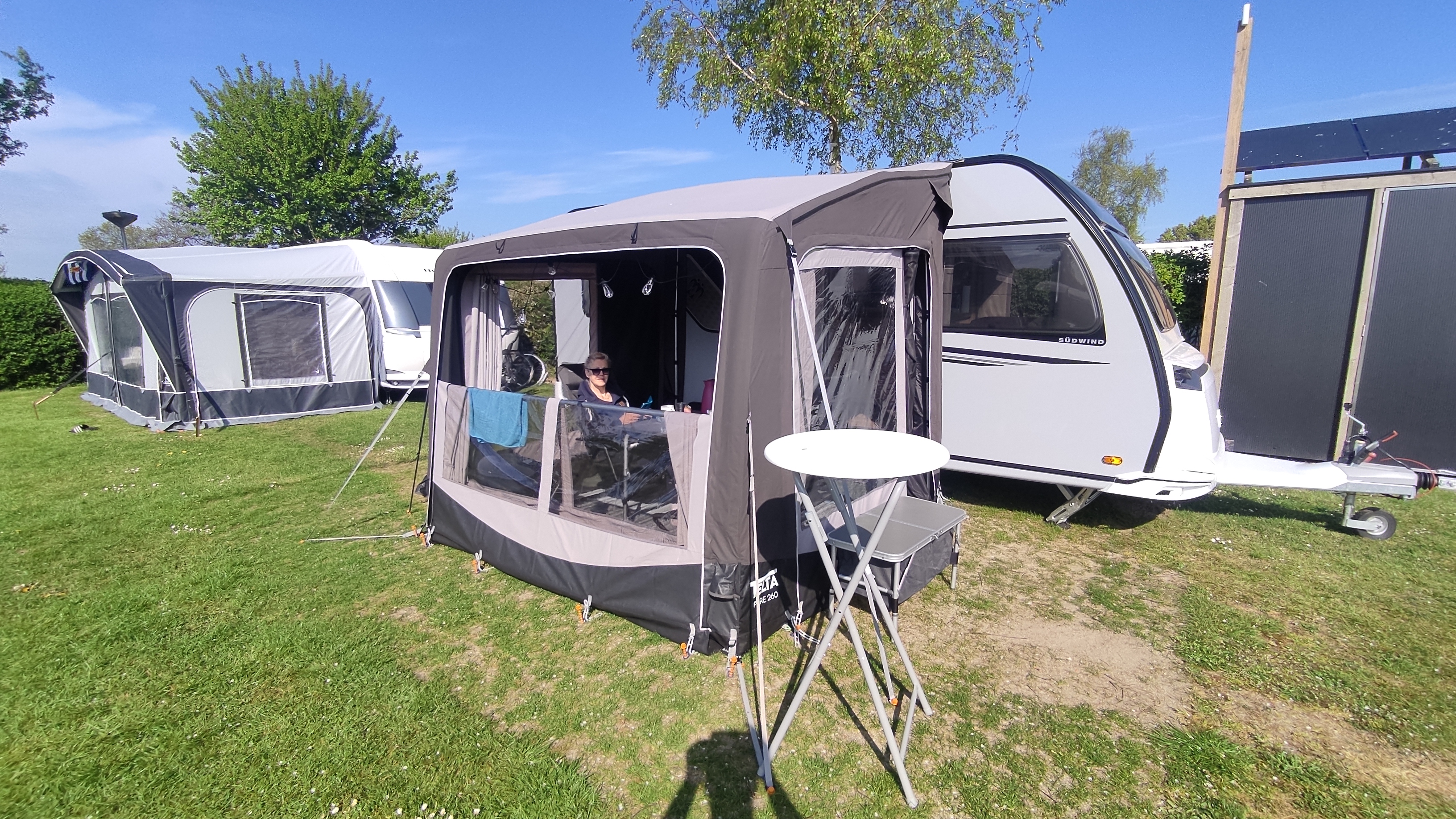 Die Anbauhöhe ist der Abstand vom Boden bis zu dem Punkt, an dem das Vorzelt am Wohnwagen, Wohnmobil oder Bus befestigt wird – zum Beispiel an der Caravan-Schiene oder an der Kassettenmarkise.