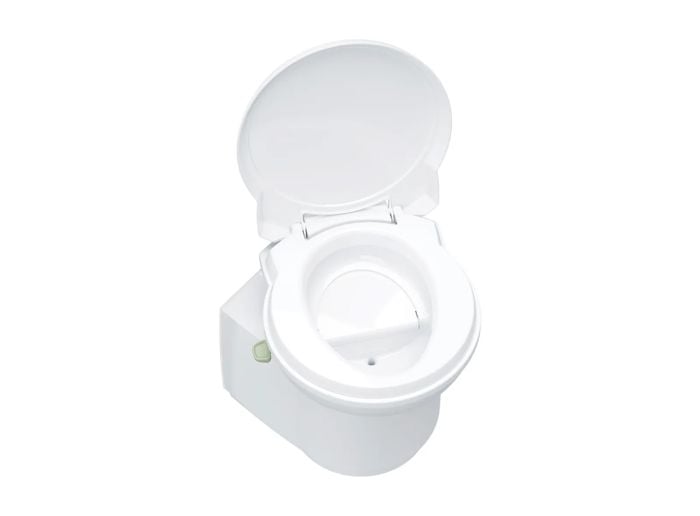 Die Thetford S260-S Trockentoilette ohne Verkleidung ist eine elektrische Toilette, die ohne Wasser oder chemische Zusätze funktioniert, wodurch das Entleeren seltener erforderlich ist.