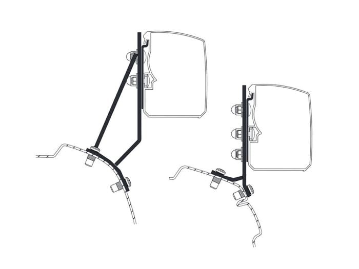 Der Thule Adapter 3200 Custom V710/Transporter T7 ermöglicht die Befestigung der Thule Omnistor 3200 Markise mit einer Länge von 270 oder 300 cm an einem Volkswagen T7 oder Ford Transit Custom V710. Das Adapterset besteht aus 2 Halterungen.