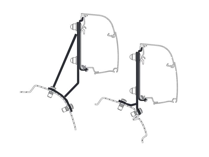 Der Thule Adapter 4200 Custom V710/Transporter T7 ermöglicht die Befestigung der Thule Omnistor 4200 Markise mit einer Länge von 260 oder 300 cm an einem Volkswagen T7 oder Ford Transit Custom V710. Das Adapterset besteht aus 2 Halterungen.