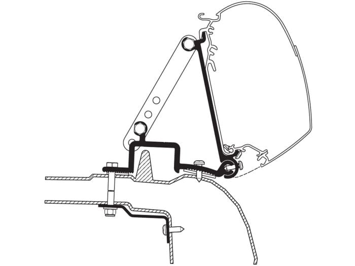 Dieser Adapter macht es möglich eine Markise Thule Omnistor 5200, 8000, 4900 oder 2000 an einem Renault Master H2, Opel Movano H2 oder Nissan Interstar H2 von 1998 bis 2010 zu befestigen. Das Set besteht aus 3 Halterungen von 8 cm.
