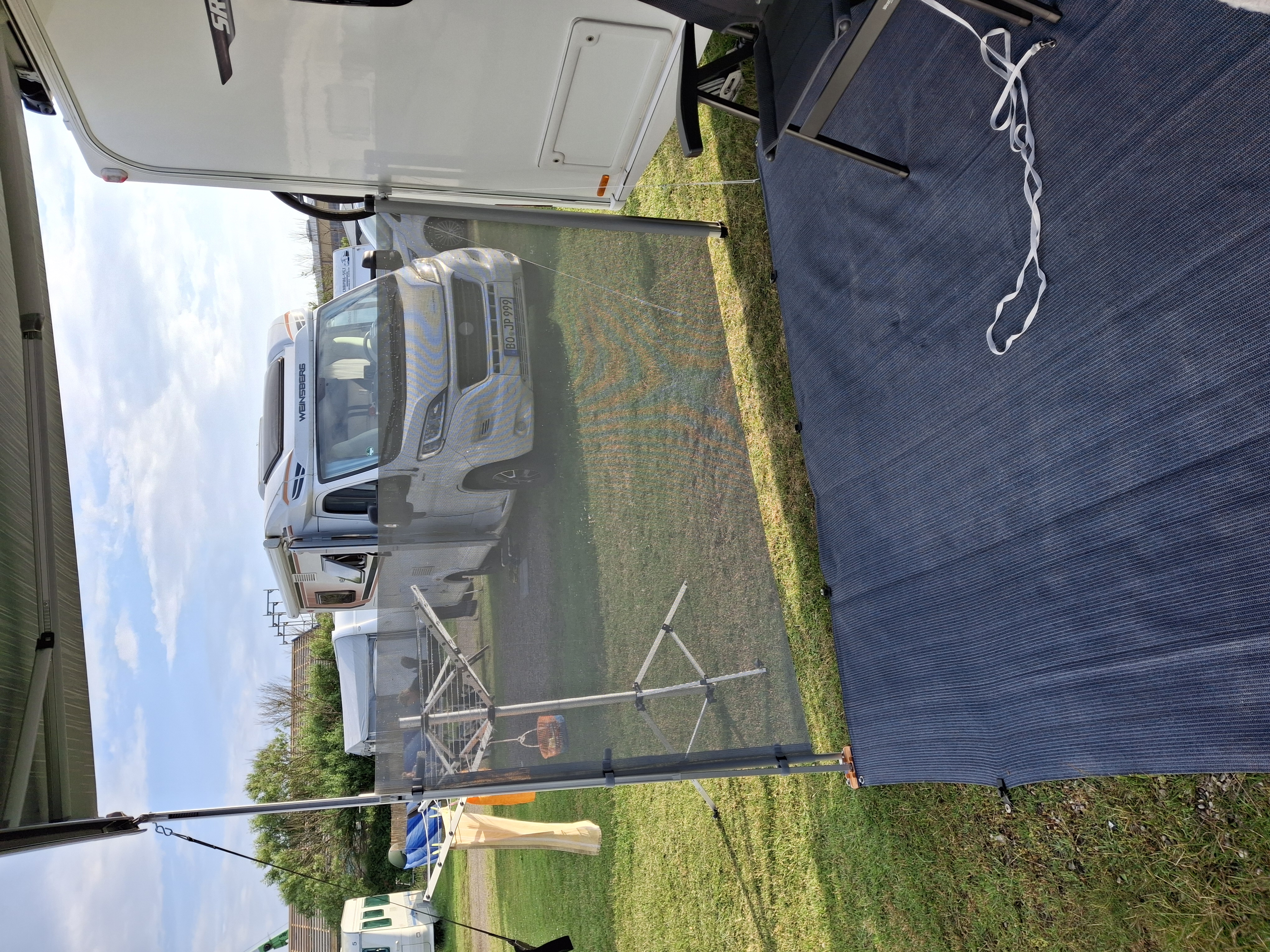 Der Thule Windscreen hat ein automatisches Auf- und Abrollsystem. Der Windschutz wird mit Hilfe einer festen Halterung an der Wand oder in die Wohnmobilschiene befestigt. Der Windschutz kann ganz einfach abgenommen werden. Die andere Seite des Windschutzes wird mit einem Klettverschluss an dem Ständer befestigt.