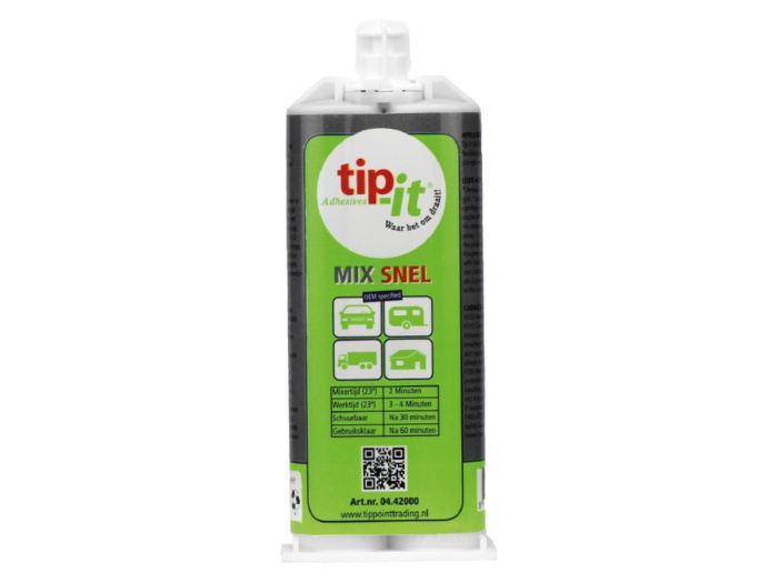Tip-It Mix Fast ist ideal zum Reparieren und Kleben von harten Kunststoffen wie Kunststoff, Stahl, Stein, Beton, Melamin, Holz usw. Hat die Eigenschaften wie Festigkeit und Flexibilität von synthetischen Materialien. Eignet sich zum Verkleben und kann als Reparaturmittel dienen. Verarbeitet sowohl dünne als auch dicke Schichten. Geeignet für die Reparatur und Verklebung von harten und flexiblen Kunststoffen wie Polyester, Schnellbausteinen, Beton, Stein usw. Klebt schnell ABS, SMC, PC, HPL, Melamin, Holz, Stein usw. und Dämmstoffe wie Styrodur, Rockwool und Rockpanel.