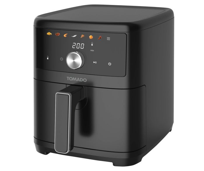 Bereite mühelos alles zu – von knusprigen Pommes und Snacks bis hin zu köstlich saftigen Schokoladenküchlein – mit der Tomado TAF6001B Heißluftfritteuse! Mit einem Fassungsvermögen von 6Litern ist diese Heißluftfritteuse groß genug, um 1000Gramm Pommes auf einmal zuzubereiten – ideal für bis zu 6Personen. Über das digitale Display mit Drehknopf und Sensortasten kannst du aus 7 automatischen Programmen wählen und so perfekte Ergebnisse erzielen. Das Display dieser Heißluftfritteuse ist mit klaren Symbolen versehen, sodass du ganz einfach das passende Programm für dein Gericht auswählen kannst. Dank der Heißlufttechnologie kochst du gesünder, ohne auf Knusprigkeit zu verzichten. Stelle den Timer auf bis zu 60Minuten ein – und genieße köstliche Ergebnisse!