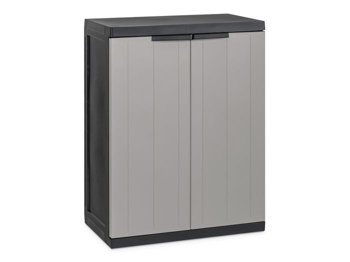 Toomax Bios Midi Aufbewahrungsschrank niedrig - hellgrau/anthrazitDer Toomax Bios Midi Aufbewahrungsschrank niedrig ist die perfekte Lösung für die Aufbewahrung von Kissen, Gartenzubehör und anderen Gegenständen in Ihrem Garten oder Ihrer Garage. Dieser stilvolle und multifunktionale Aufbewahrungsschrank bietet eine Kombination aus Benutzerfreundlichkeit, Haltbarkeit und attraktivem Design. Die Aufbewahrungsbox ist mit einem Vorhängeschloss versehen, so dass Sie sie komplett abschließen können. (Vorhängeschloss nicht enthalten). Diese Aufbewahrungsbox hat 1 Fachboden für 20 kg.