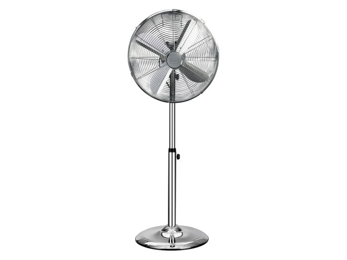 Die Besonderheit des Ventilatordesigns besteht in der metallischen Retrooptik, die auch als Vintage-Look bezeichnet wird. Durch das verchromte Design fügt sich dieser Ventilator in alle Arten von Interieurs ein.