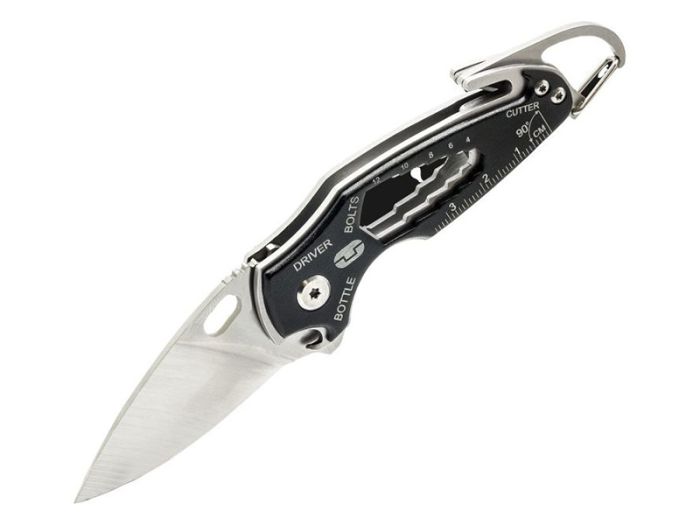 Dieses Taschenmesser passt dank seiner kompakte Größe problemlos in eine Hosentasche. Mit dem Taschenclip kann es auch einfach an einem Gürtel befestigt werden! Neben einem Taschenmesser hat dieses Multitool über weitere Werkzeuge: