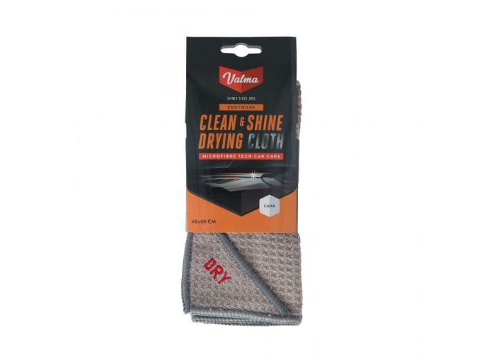 Das Valma Clean & Shine Trockentüch wird zum Trocknen des Fahrzeugs verwendet, um Wasserflecken zu vermeiden. Die Waffelstruktur der Oberfläche dieses Mikrofasertuches bieten beim Trocknen aller Flächen innen oder außen optimale Leistungen. Das Valma Clean & Shine Trockentuch hat einen weichen Rand und eine Größe von 40x40 Zentimetern.