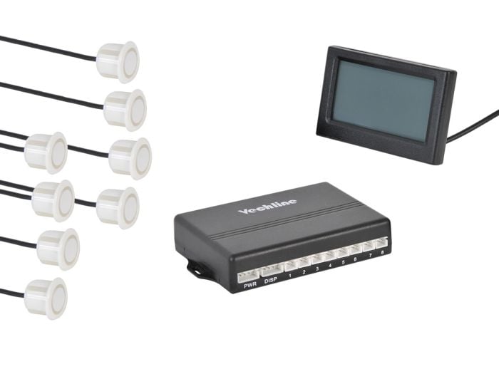 Die Vechline Einparksensoren sind ein Set von 8 Sensoren zum rückwärts Einparken Ihres Wohnmobils oder Busses. Die Sensoren geben einen akustischen Alarm und sind mit einem automatischen Stand-by ausgestattet. Die Sensoren erkennen Personen und Hindernisse und arbeiten mit 12 und 24 Volt. Das Set wird mit einem 19,5 Meter langen Kabel geliefert.