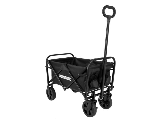 Verpackung & Inhalt 1 × VONROC Bollerwagen Compact – Schwarz (Modell HC501XX_BLACK)