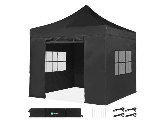 VONROC Faltpavillon 3x3 m – Set inklusive Seitenwände – Schwarz
