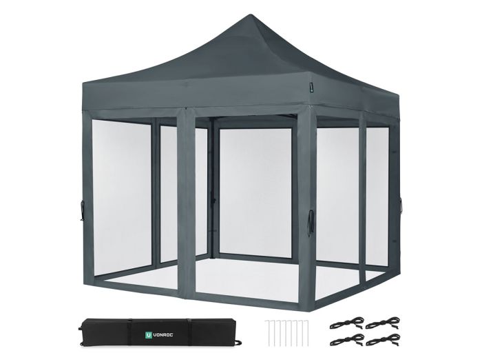 VONROC Premium 3x3 Pavillon mit Moskitonetz-Seitenwände - Grey