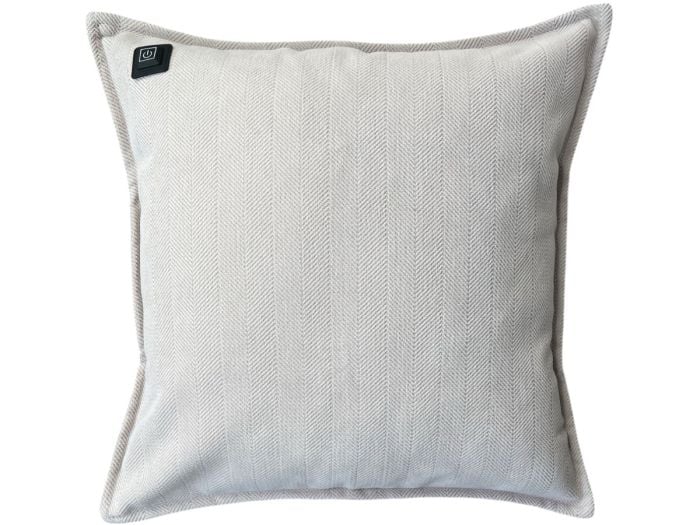 Der Chenille-Bezug und die Bedientaste sind spritzwassergeschützt und lassen sich einfach mit einem feuchten Tuch reinigen – ideal für den Einsatz im Freien.