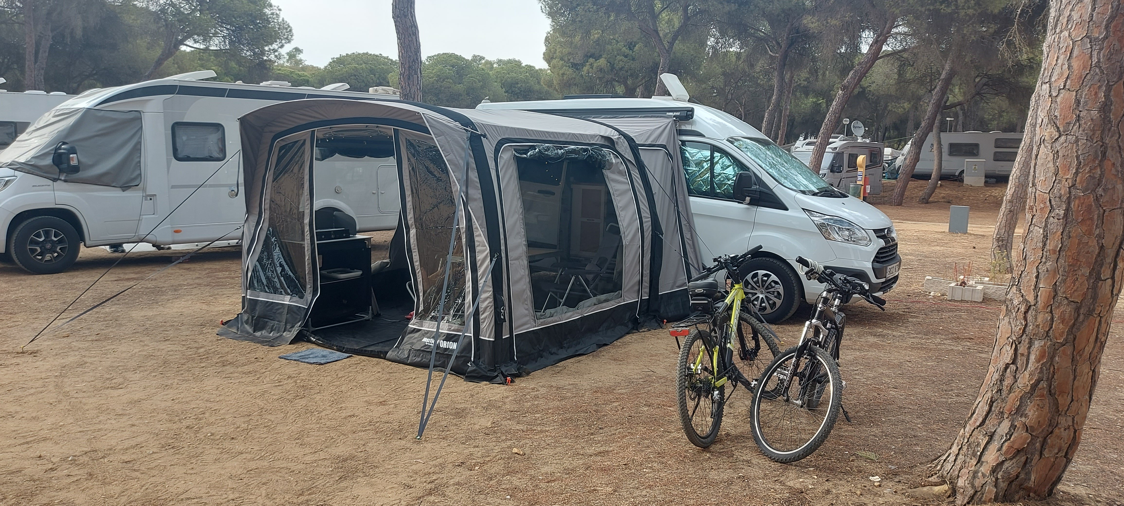 Ein freistehendes Zelt kann auch ohne Wohnmobil oder Bus an Ort und Stelle bleiben. Das ist besonders praktisch, wenn man öfters mit dem Fahrzeug losziehen will, ohne jedesmal das Zelt auf- und abbauen zu müssen.