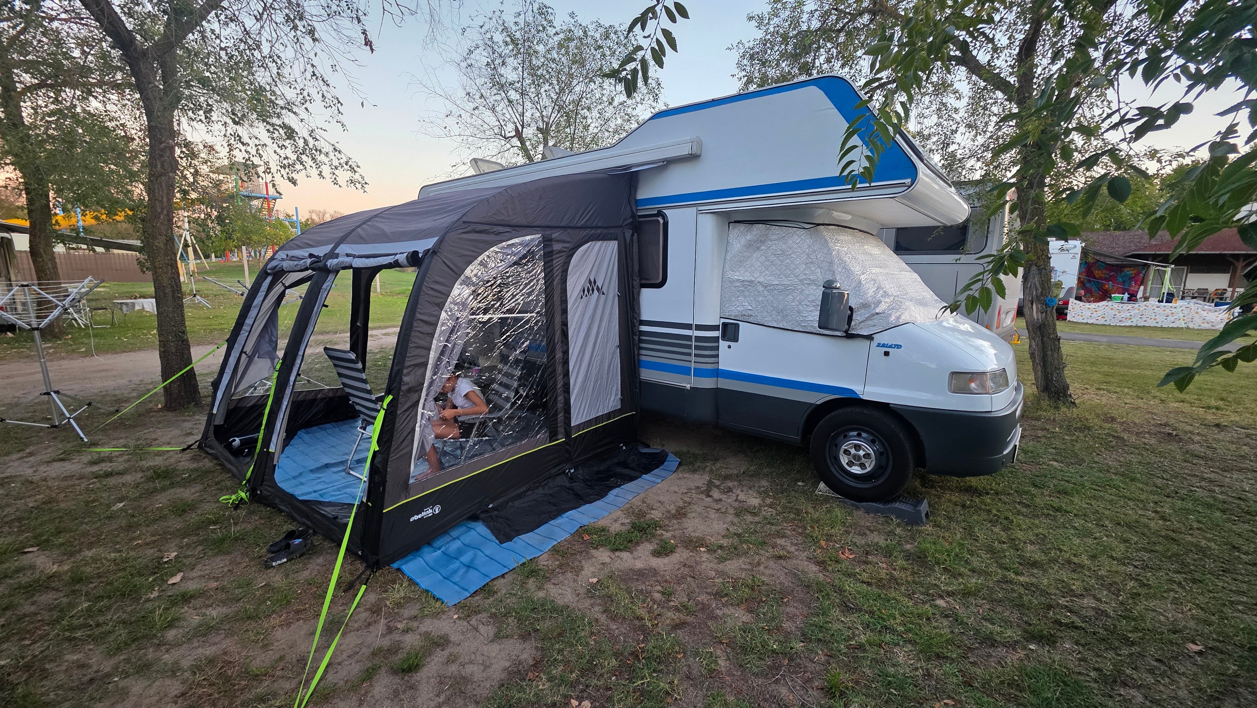 - Luftzelt PlamaSuper Luftvorzelt, schnell aufgebaut, alles dabei, was man braucht. Lediglich für 75% der Stangen, die mit dabei sind, finde ich keine Verwendung. Geht auch sehr gut ohne.