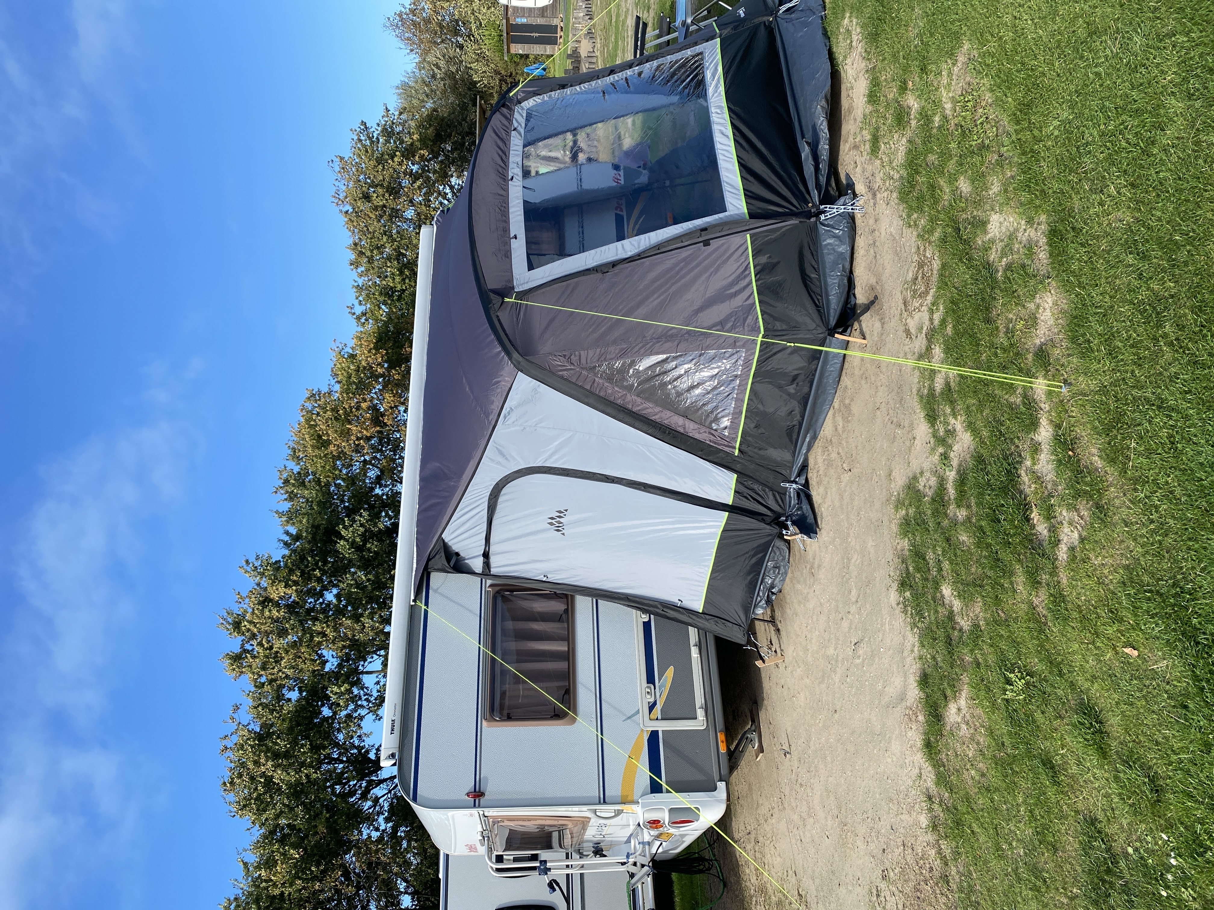 Das Zweite Chance Obelink Rio 320 Easy Air ist ein kompaktes Luftvorzelt, sowohl für Wohnwagen als auch für Wohnmobilen geeignet.